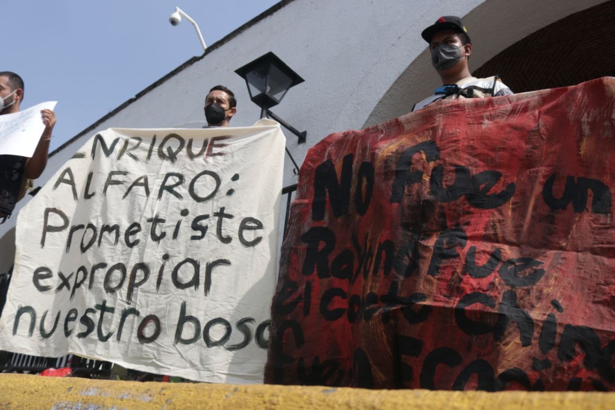 Con pancartas y letreros que exigían “Alto al fuego” y “No a la privatización de los bosques”, las y los activistas gritaban “el bosque no se vende, se cuida y se protege”. Exigían hablar con el Gobernador del estado, Enrique Alfaro Ramírez, para que sus reclamos fueran escuchados y se tomaran acciones contundentes e inmediatas contra los incendios que destruyen el bosque y la construcción de fraccionamiento sobre los espacios previamente incinerados.