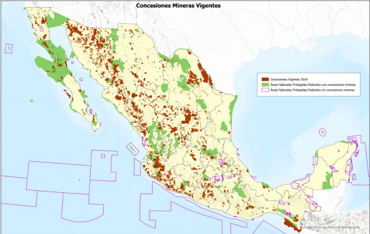De acuerdo con los datos de la Comisión Nacional de Áreas Naturales Protegidas, el 7.7 por ciento de la superficie que debería ser protegida por las leyes ambientales mexicanas fue concesionada a empresas mineras durante las últimas tres administraciones. Ese porcentaje equivale a 1.5 millones de hectáreas, distribuidas principalmente en los estados de Querétaro, Guanajuato, San Luis Potosí, Hidalgo, Coahuila, Baja California y Baja California Sur, donde se ubican 45 proyectos mineros.