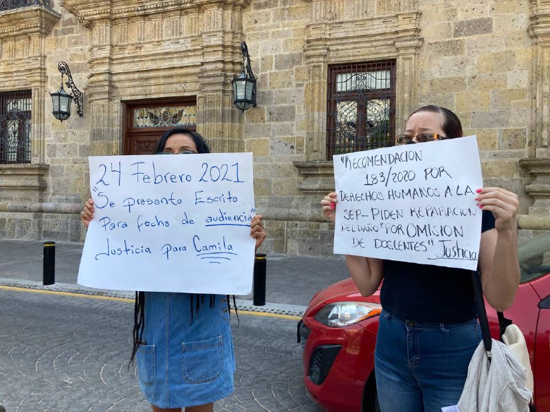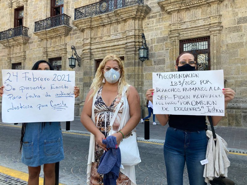 La madre de Camila, niña víctima de abuso físico, psicológico y sexual en la primaria Marco Antonio Montes de Oca en Zapopan, Jalisco, se manifestó a las afueras de Palacio de Gobierno en Guadalajara para exigir justicia y atención adecuada para su hija; pues pese a que ella requiere atención médica especializada, debido a las secuelas que dejaron estas violencias, todos los gastos han tenido que ser cubiertos por su cuenta y no por las autoridades responsables de garantizar asistencia y reparación integral.