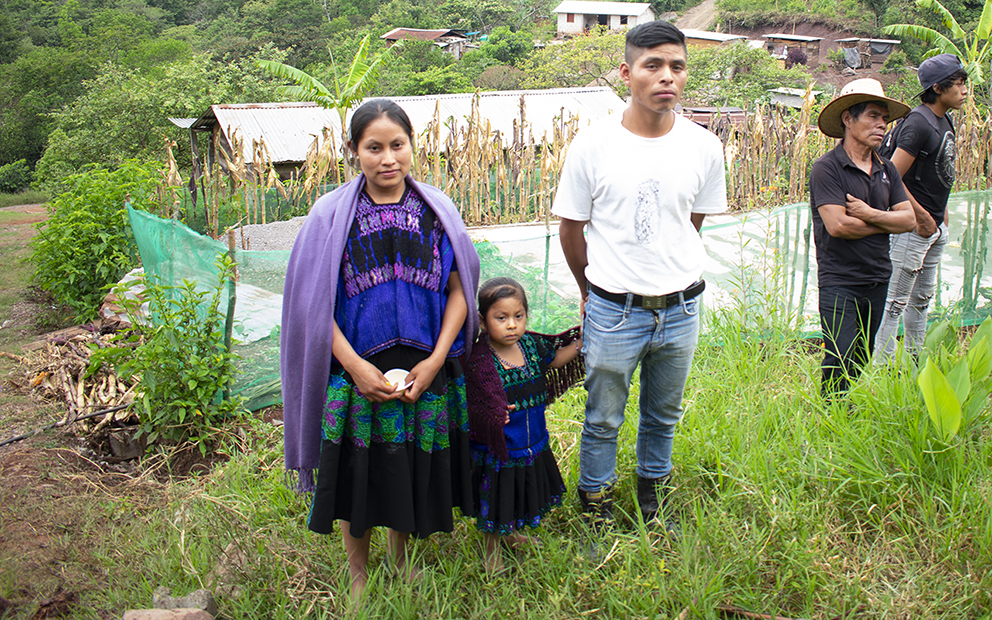 Juana Ramírez Pérez con su esposo Pedro Jiménez Méndez y su hija, tras su regreso en el ejido Los Chorros.