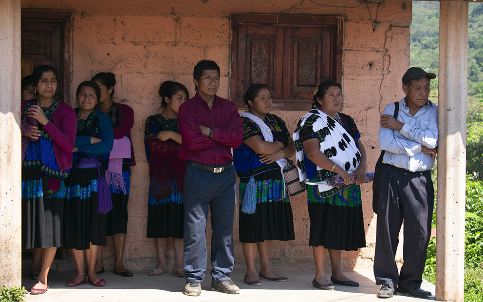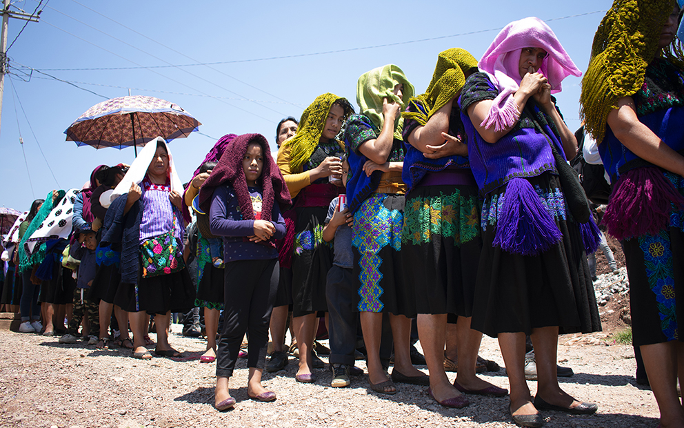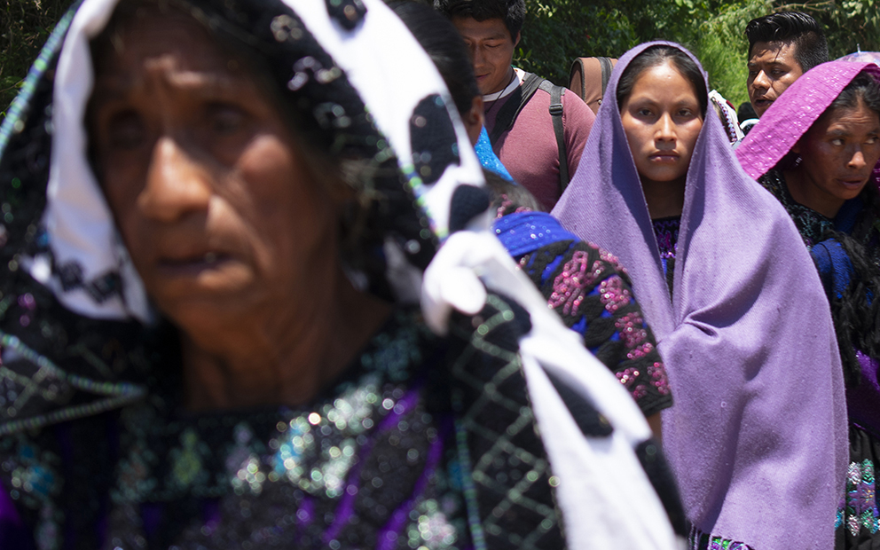 Integrantes de la Sociedad Civil Las Abejas antes de acompañar a las familias desplazadas de Los Chorros en su regreso a la comunidad.