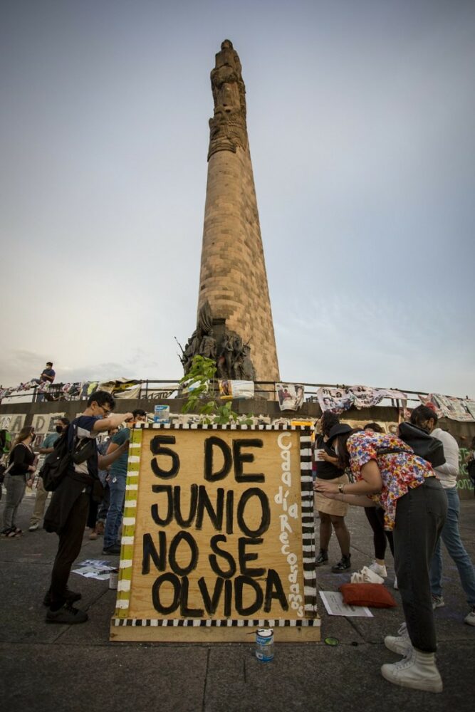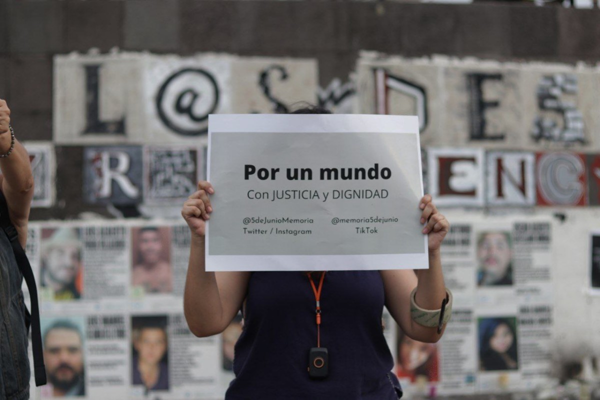 “Por un mundo con justicia y dignidad”, “5 de junio no se olvida” fueron algunas de las consignas que se leían en las pancartas de los y las asistentes al acto de memoria del colectivo 5 de junio memoria en “Glorieta de los y las desaparecidos”, este sábado.