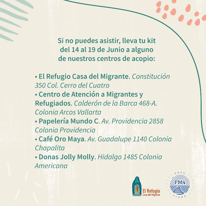 El Refugio Casa Migrante y FM4 Paso Libre convocan a participar en el primer Picnic Solidario que busca apoyar a las personas refugiadas con kits de comida, ropa y una carta de buenos deseos; la cita es el próximo 20 de junio en el Parque Metropolitano de Guadalajara, día en que también se celebra el Día Mundial de las personas refugiadas.
