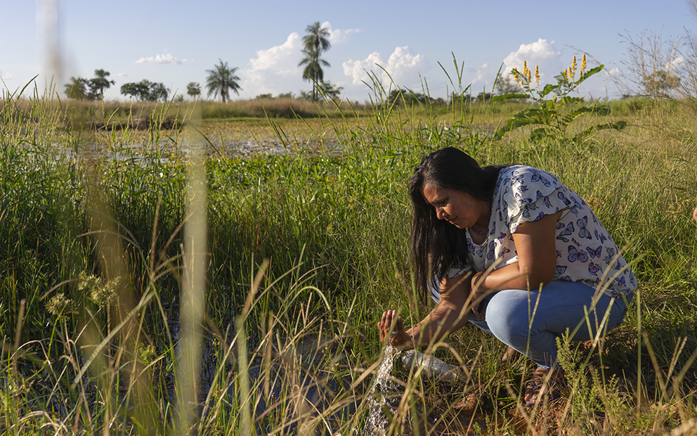 Bernarda Pesoa cuenta que su pueblo tiene un vínculo histórico muy próximo al agua. Antes de que sus antepasados migraran a Cerrito, sus ancestros desarrollaban su vida cerca del río. Por eso el sentido del Etaxat o agua en lengua Qom va más a allá de la utilidad cotidiana que le damos muchas personas al vital líquido. Foto: Mayeli Villalba.