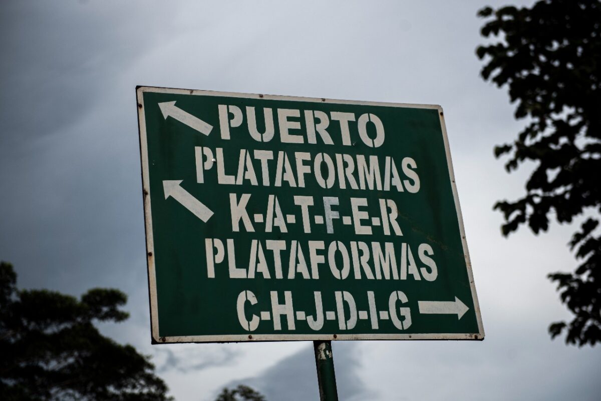 Rótulo indicativo de las distintas plataformas existentes en la zona, Comunidad Kichwa El Edén – Ecuador, junio 2021. Foto: Josué Araujo
