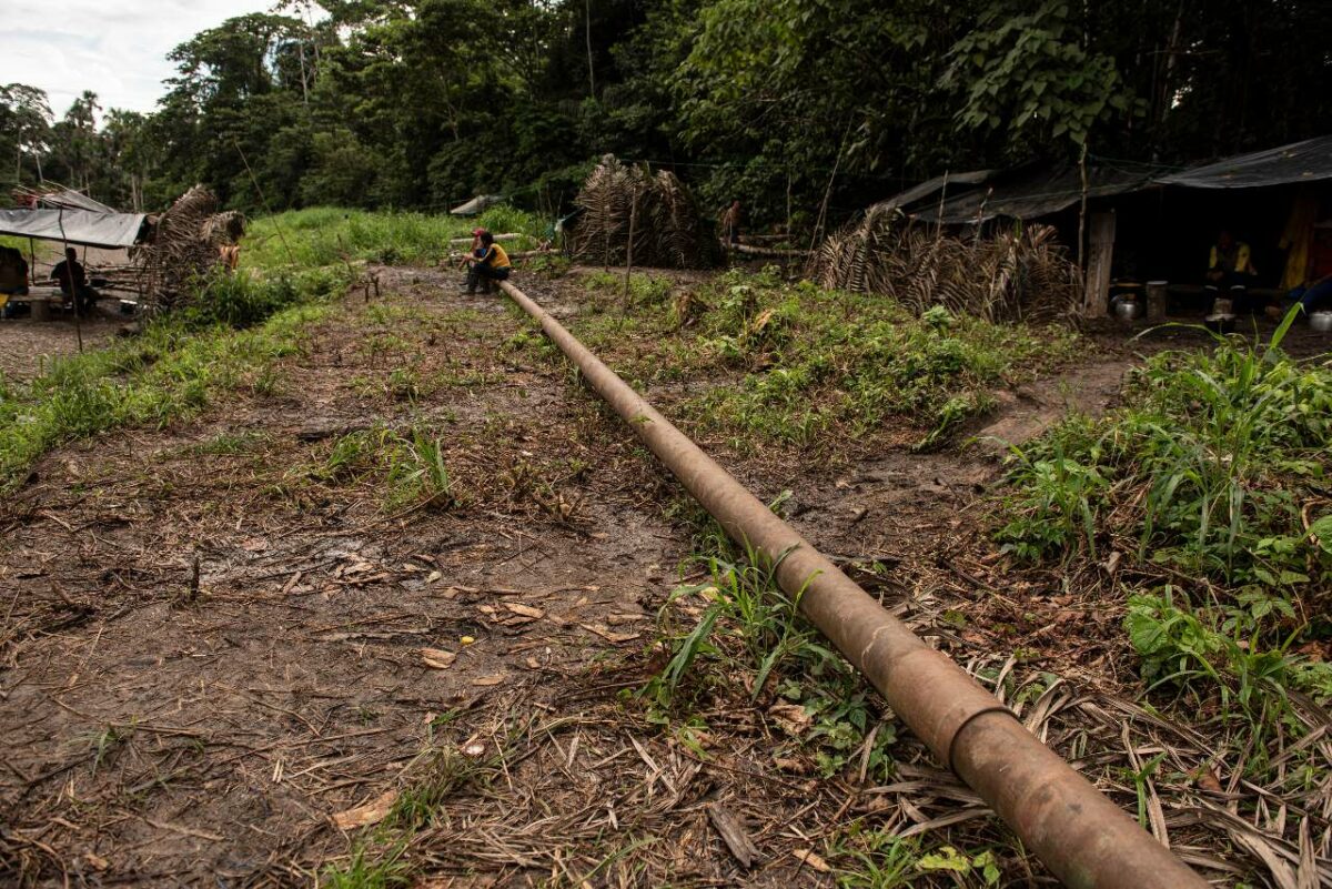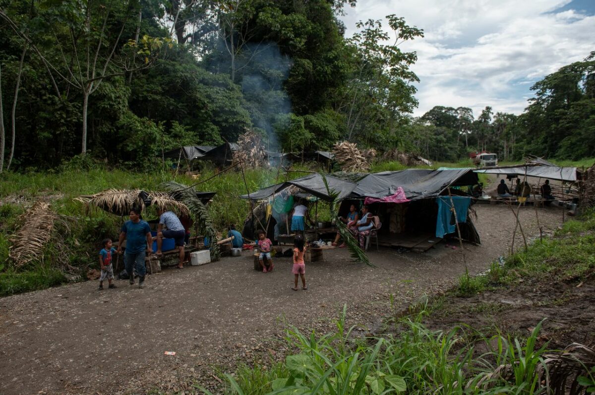 Desde el 10 de mayo, los pobladores decidieron protestar pacíficamente. Con palos y plásticos improvisaron carpas bajo las cuales ellos y sus hijos se resguardan de la lluvia. La cocina se instaló en medio del campamento con ollas donde se cocina yuca, verde y arroz. Pollos se preparan en un asador casi al ras del piso. «A veces, las cosechas en las chacras sólo se dan una vez y después los árboles mueren» comparte Edwin. El suelo es apto para agricultura de ciclo corto.