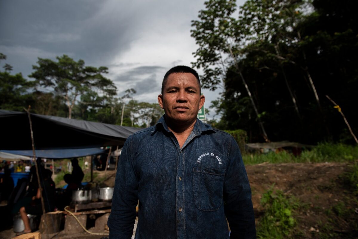Llegamos a una bifurcación en el camino que por un lado, conecta a la estación petrolera Edén Yuturi. En este lugar, los comuneros de El Edén sostienen un campamento rudimentario. Palos y plásticos levantan sombras para guarecerse de la continua lluvia. Se divisan una larga fila de motocicletas y un tanque cónico para unos mil mililitros de agua de uso comunitario. De un total de 169 familias, al menos unas 50 personas permanecen en el campamento. El 10 de mayo de 2021, para algunos trabajadores finalizó el contrato con la petrolera local. Fue la fecha en que las autoridades comunales escogidas por 284 socios, decidieron plegarse a una protesta pacífica.
