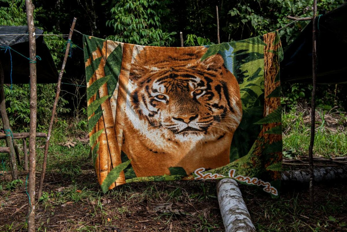 Manuel Coquinche y otros curanderos de la comunidad, cuidan y sanan a las personas. Las amenazas que ha recibido son reales y las enfrenta con la sabiduría de un tigre que conoce su fuerza: «Soy un líder y mi obligación es llevar adelante a mi pueblo». En mitad del campamento donde se mantiene la protesta, hacemos un retrato con la descendencia del tigre-chamán. Cierro el diálogo con el líder histórico de la comuna Kichwa Naporuna. También he visto al hijo de un tigre llorar.