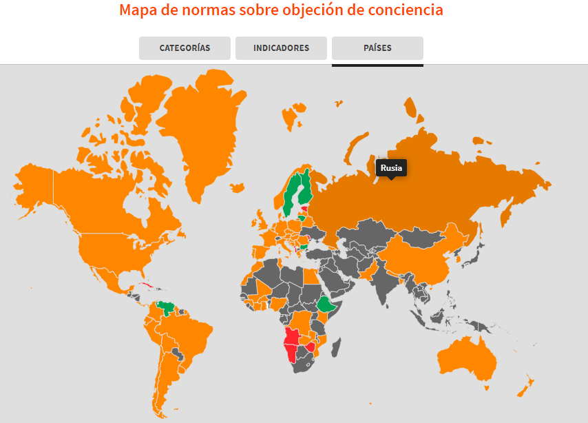 Eso significa que, solamente en el 38% de los países que aparecen en el mapa hay lineamientos a la hora de acceder a la objeción de conciencia.