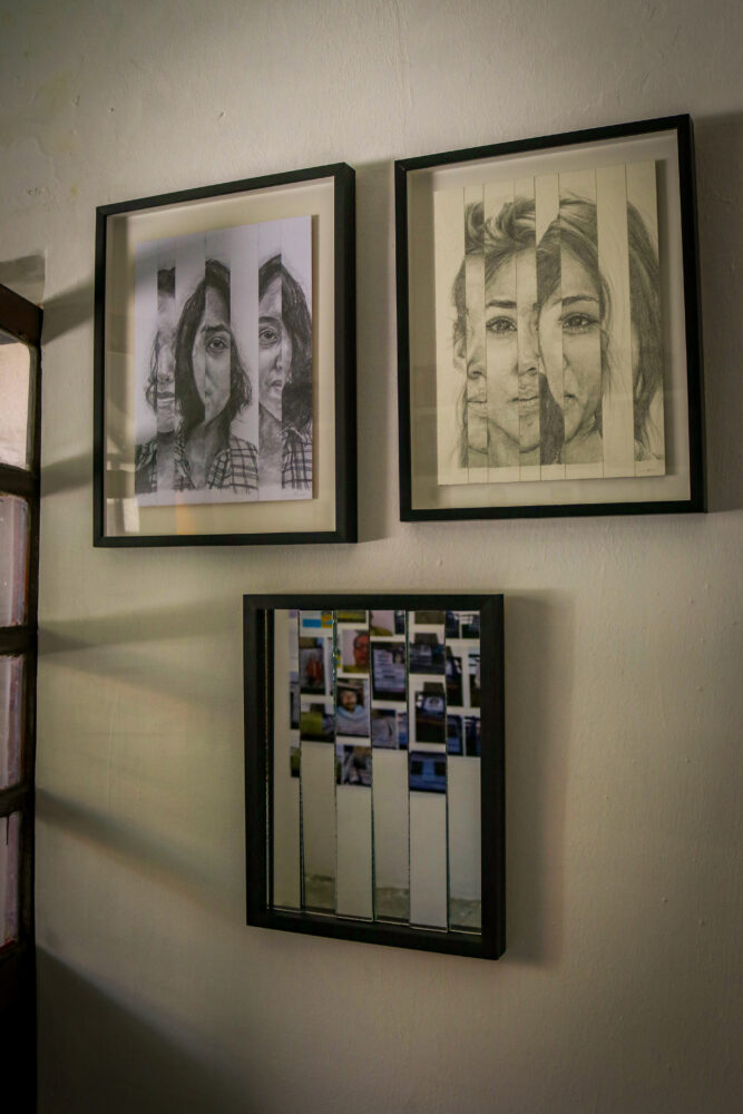 Por eso entre las obras había retratos divididos en segmentos desordenados y un espejo con la misma apariencia. El fin de este último era reflejar el muro de personas desaparecidas, y a la vez, que cuando alguien se asomara, se diera cuenta de que el rostro fragmentado pudo haber sido el suyo.