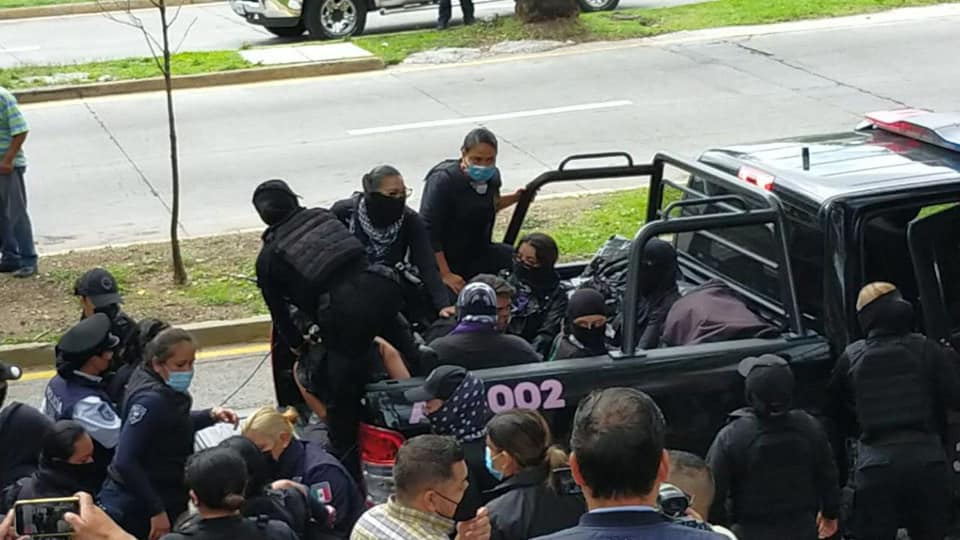Las 10 mujeres, entre ellas dos menores de edad y una madre con su hijo lactante, fueron sometidas a actos de intimidación, amenazas y golpes, según denunció el Frente Feminista el día sábado por la tarde en un acto de exigencia de justica frente a Palacio de Gobierno en la capital del estado: