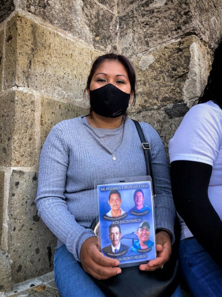 Desde Guerrero viene Victoria Paz Diego, una buscadora “independiente” que busca a sus tres hermanos Felipe Ramírez Diego, Andrés Ramírez Diego y Javier Paz Diego, y a su esposo y padre de sus tres hijos, Javier Barrales Hernández.
