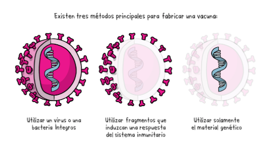 Ahora bien, como se muestra en la siguiente ilustración, hay tres métodos principales para fabricar una vacuna: