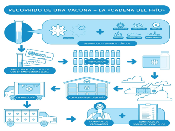 - Se fabrican grandes cantidades para su distribución. Generalmente se almacena en temperaturas frías. El proceso culmina con las campañas de vacunación.