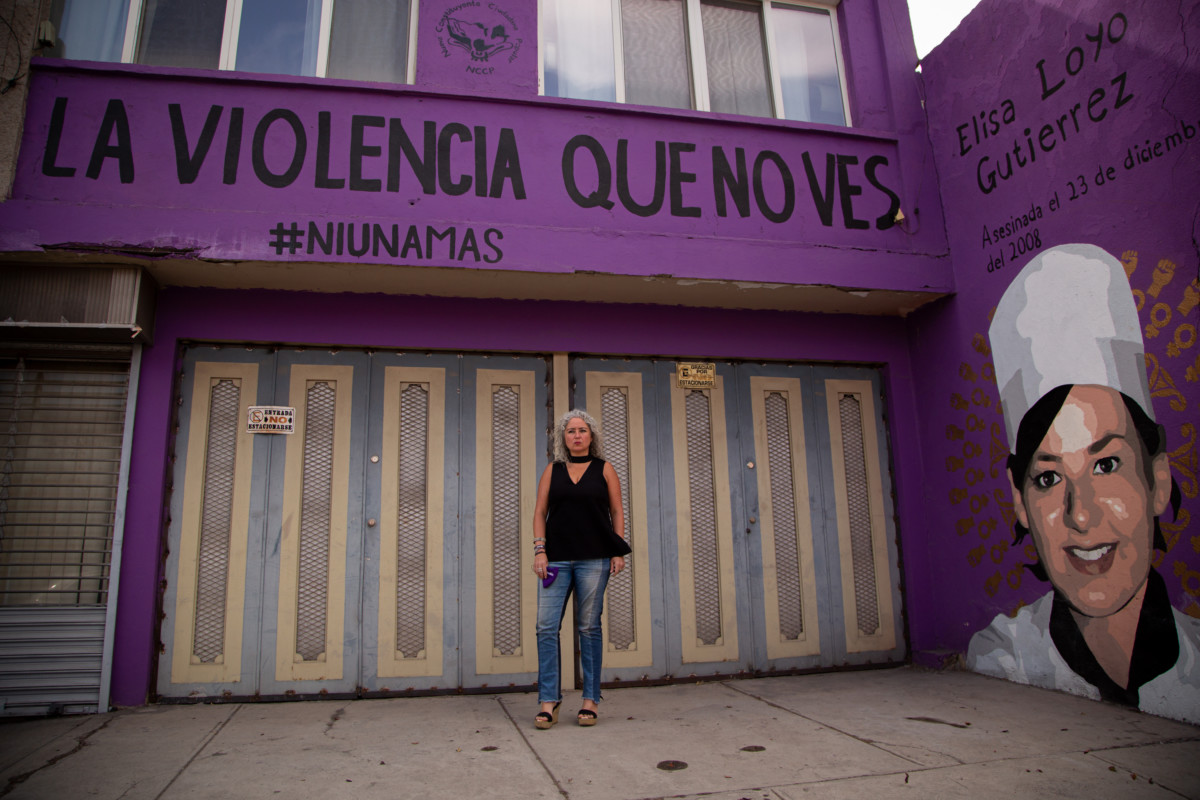 Luego de esto, Jaqueline se refugió en un espacio seguro que le consiguió la Red Nacional de Defensoras de DH en México. Como una forma de protegerse, ideó pintar la fachada de su casa con un mural morado, con el rostro de tres víctimas de feminicidio y la leyenda: “el patriarcado es un juez que nos juzga por nacer”.