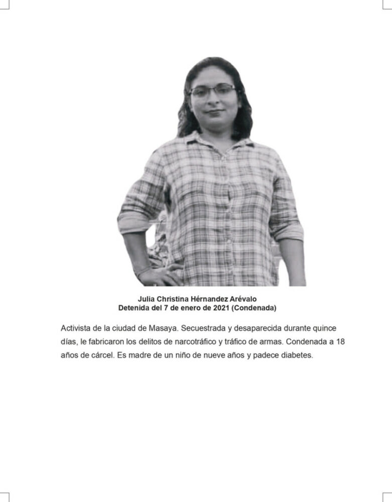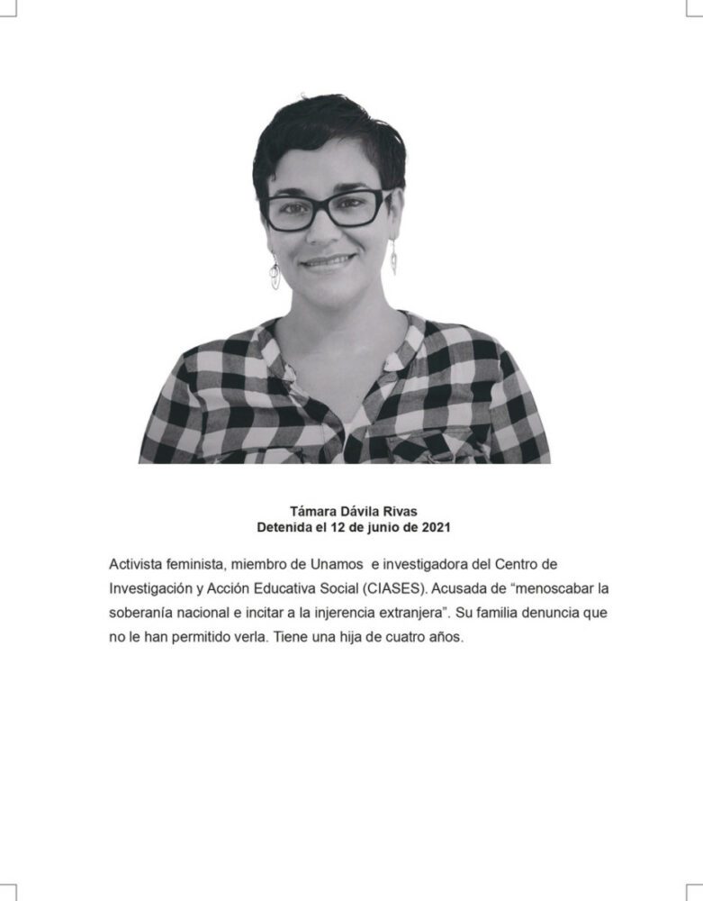 A través de un fanzine, elaborado por el medio independiente Hora Cero, las manifestantes difundieron información sobre la vida de estas mujeres y ofrecieron detalles sobre las situaciones adversas que enfrentan cada una de las 10 detenidas desde que fueron privadas de su libertad por tener una mirada crítica respecto del actuar del gobierno de Ortega, tanto en las protestas sociales de 2018 que dejaron más de 300 personas asesinadas, decenas de desapariciones forzadas y detenciones arbitrarias, como en las decisiones políticas que ha tomado tras la represión.