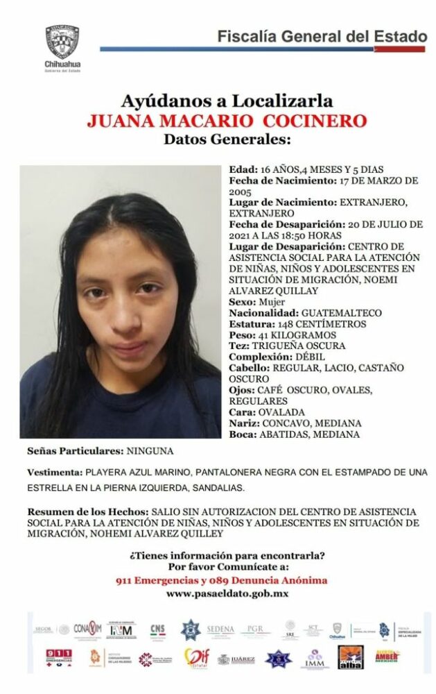 Juana Alicia y Daniela Alejandra tienen 17 años; Yajaira, Juana Macario, Elizabeth y Juana Marleny, 16; Maricela, 15 y Elsa, 14 años. Todas son migrantes no acompañadas reportadas como desaparecidas por los albergues donde se encontraban resguardadas y bajo la custodia del Estado en Ciudad Juárez.