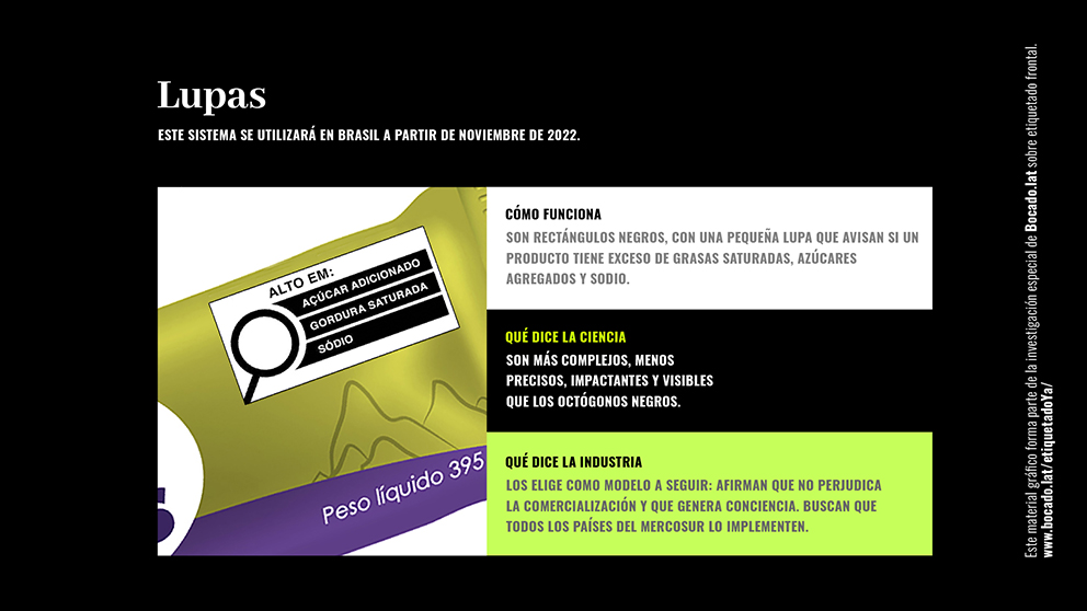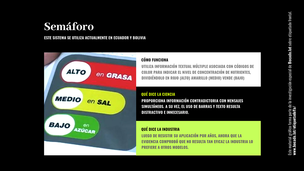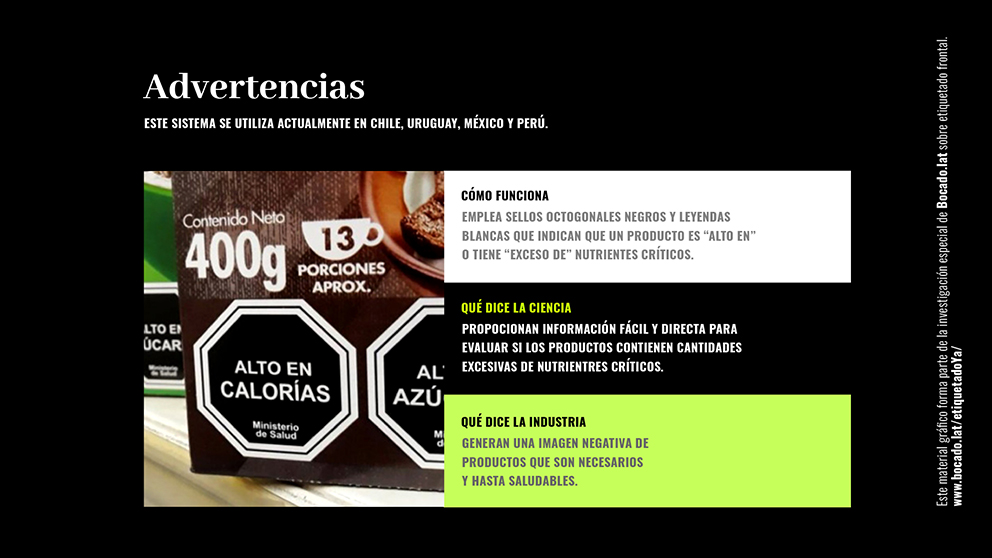 ¿Por qué, hasta ahora, la industria ha podido aumentar su presencia y transformar productos que eran considerados superfluos o de consumo esporádico en parte central de la alimentación cotidiana? ¿Por qué los padres y madres ofrecen sistemáticamente a sus hijos un menú de productos que pueden dañar su salud? El senador chileno Guido Girardi, principal impulsor de la ley de etiquetado en su país, no tiene dudas: “Porque hay una asimetría de información, un ocultamiento. Los sistemas de etiquetado que tiene la industria están hechos para que nadie los entienda y les permite poner basura dentro de un envase que parece saludable y afuera tiene animaciones, colores, formas de animales”.