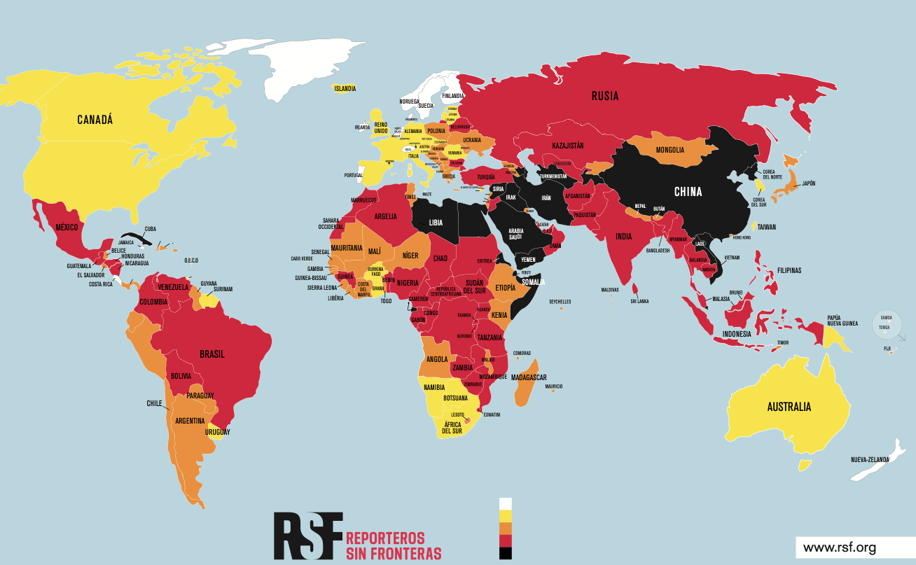“(México), uno de los países más peligrosos del mundo. La vida de los periodistas de investigación es dura en este país, corroído por la corrupción y bajo la influencia de cárteles y narcotraficantes. Los asesinatos, los exilios y la autocensura se han convertido en la regla”, señaló la organización Reporteros Sin Fronteras (RSF).