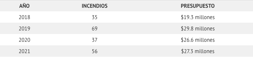 La información oficial destaca que 2019 ha sido el año con más incendios reportados, con un total de 69, que consumieron 2 mil 502 hectáreas; el año 2021 ha sido el más dañino para el bosque, pues los 56 incendios registrados hasta ahora consumieron 9 mil 952.65 hectáreas.
