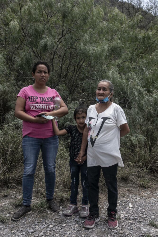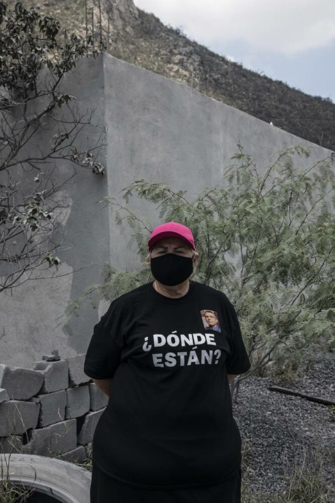 La primera fotografía de la galería es un retrato a Juana Venegas Martínez, busca a su hijo Jesús Horacio Sánchez Vargas que fue desaparecido el 31 de marzo del 2019 en Hidalgo; familiares y parte del equipo de FundeNL descansan antes de retomar la batida; Leticia Lozano, su hija y su nieta, buscan a Mario; mujeres del colectivo FundeNL llevan a cabo un día de búsqueda en la zona del pozo cerca del Río Salinas.
