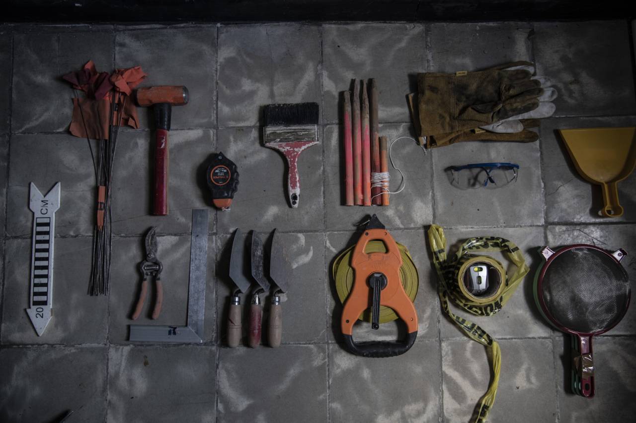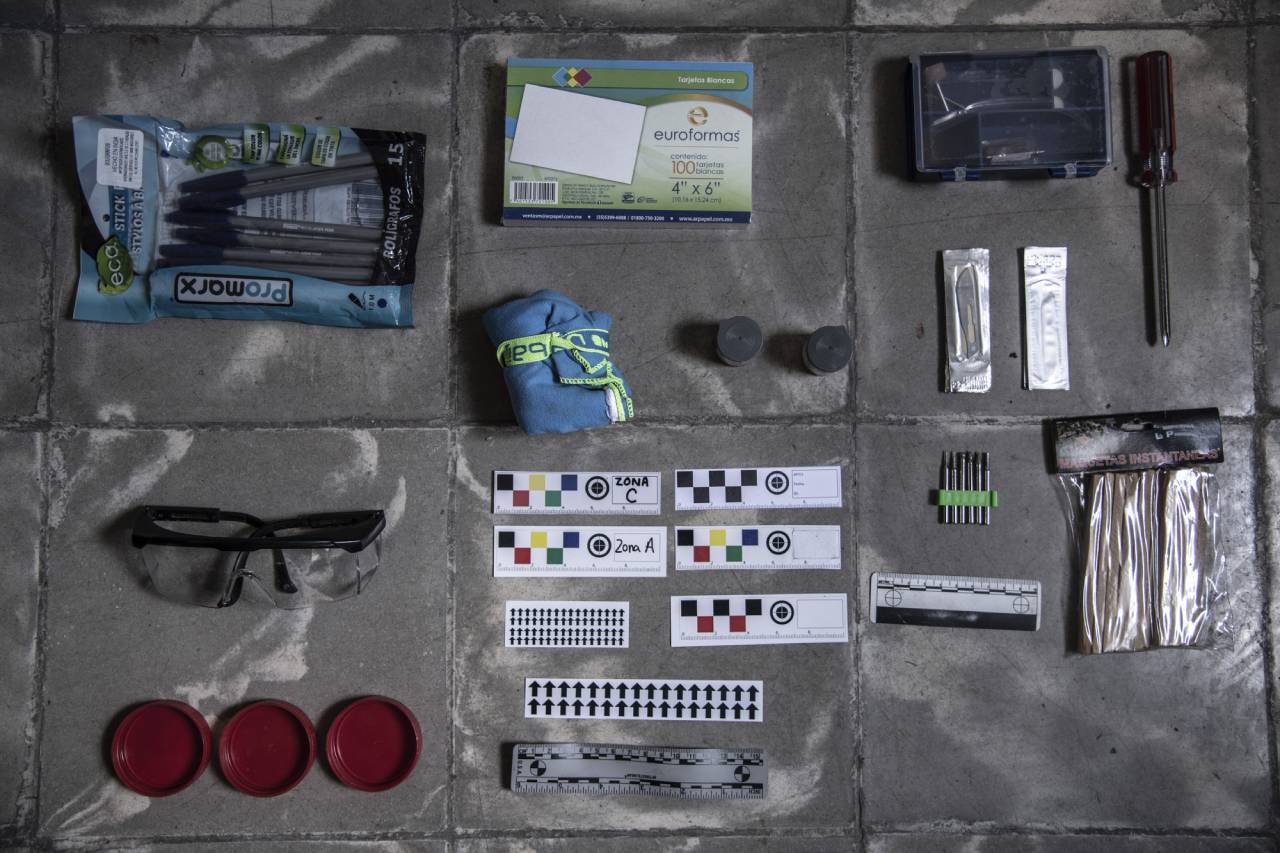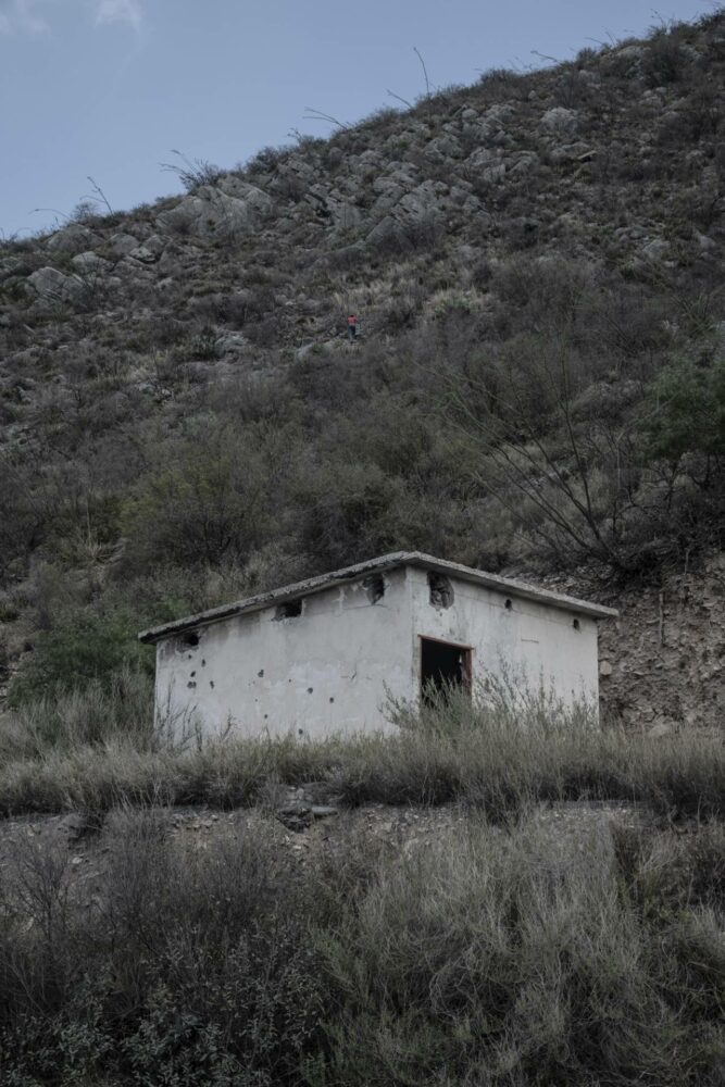 Construcción de la antigua minera; ropa encontrada en la zona; casa abandonada con impactos de bala; las herramientas del equipo