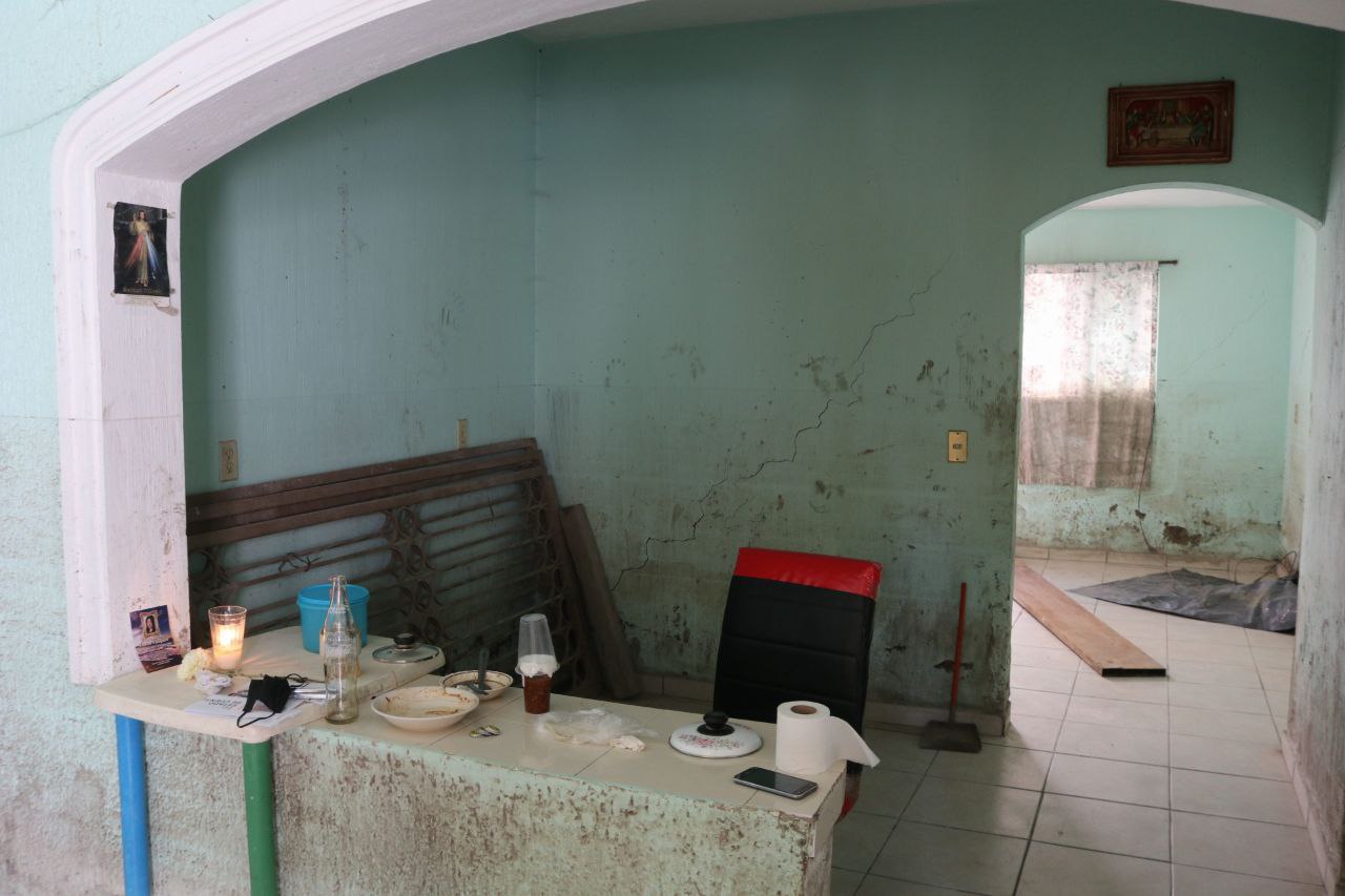 Su casa es de dos pisos, ahí viven 8 personas, las cuales se quedan con otros familiares ante la amenaza de las grietas que cada vez se hacen más grandes.