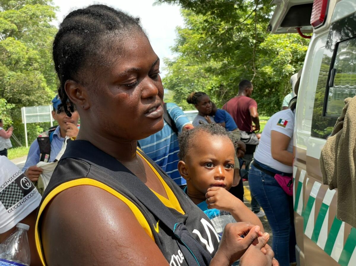 Brien, joven, fuerte, atlético, no puede contener las lágrimas cuando habla con personal de la Comisión Nacional de Derechos Humanos (CNDH) que vino a observar la caravana. Migró de Haití, atravesó la selva del Darién en Colombia, y ahora se siente vulnerable ante la situación que está viviendo en México.