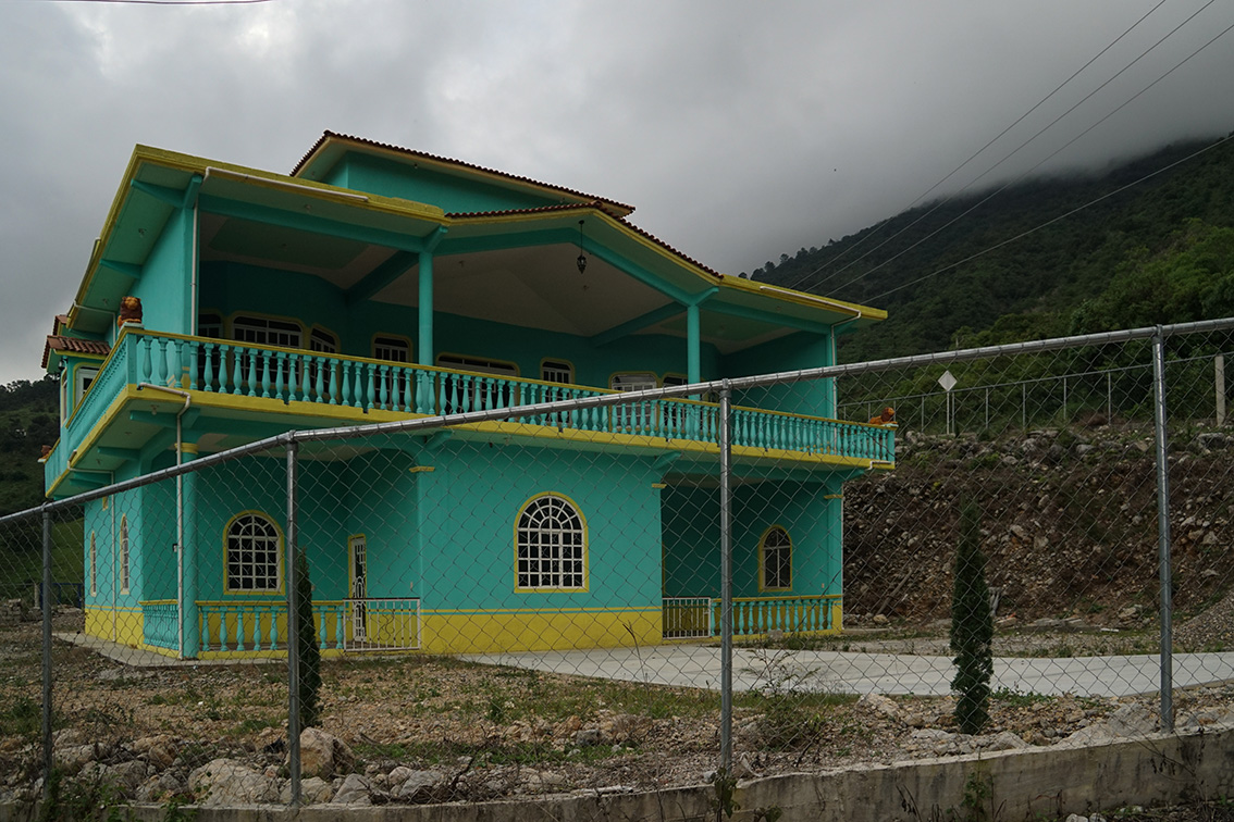 Desde la carretera, a lo lejos se observan puntos de distintos colores esparcidos sobre un verde escarpado. Son enormes casas que se han construído con el trabajo de los esposos de las mujeres que los esperan.