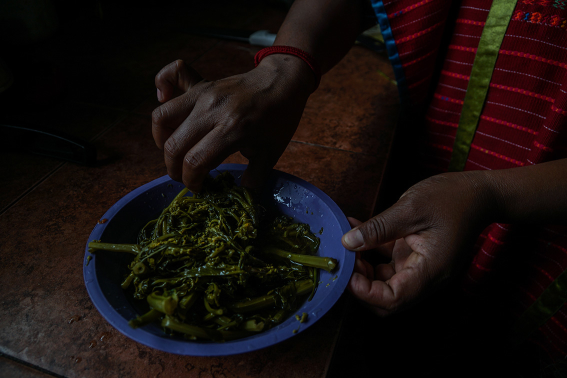 Estar todas juntas no es lo mismo. Ya sea en la Ciudad de México o en Yosoyuxi le genera tristeza. La comida no alcanza y deben hacer guardias durante la noche para cuidarse. No se duerme bien porque no están dentro de sus casas, están bajo una lona delgada o amontonados en el albergue.
