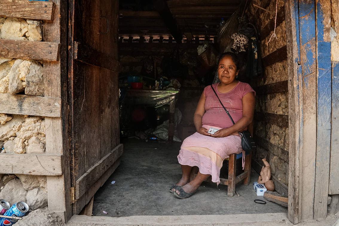 Guadalupe Martínez es originaria de Yosoyuxi, comunidad que ha acogido a los desplazados durante los retornos fallidos. Tiene 53 años y tiene 3 hijas, una está casada y dos son solteras. Su esposo falleció hace 4 meses en Estados Unidos. Tenía 20 años cuando se casó.