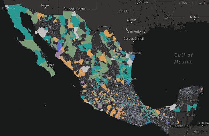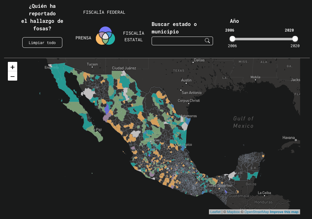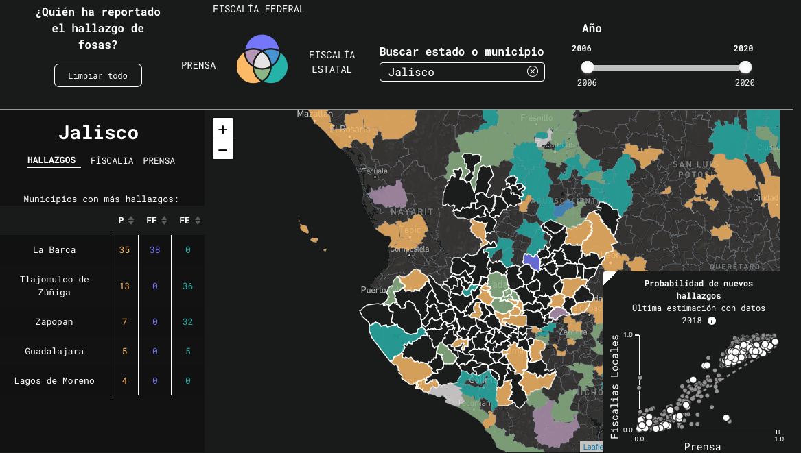 También enfatizó que, dado que las cifras son muy diferentes tanto en medios de comunicación como en lo que reportan las fiscalías estatales y la federal, en la plataforma se integra la cifra mínima por municipio y la máxima, para tener un rango representativo.