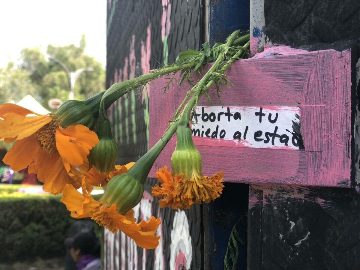 Durante las actividades de las madres y colectivos de mujeres en la glorieta, montaron una ofrenda con flores, agua y comida tradicional mexicana.