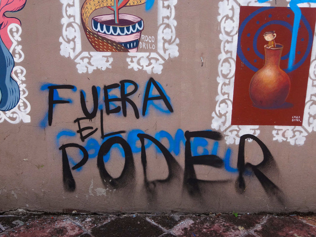 Lo anterior, no se manifiesta solamente por medio de lo que se dice, sino de lo reflejado en las paredes del barrio, en las que se pueden leer expresiones como “fuera el poder” o el tan recurrente “fuera Carbonell”. Esto último, alude al pintor que pretendía pintar un mural en el mercado, propuesta que fue rechazada por algunos habitantes de la comunidad.
