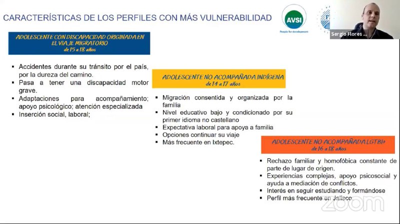 En estos perfiles también existen diferencias sustanciales entre lo que se experimenta en Jalisco y Oaxaca. En Oaxaca, la familia está iniciando su experiencia migratoria en México, sin tener una situación regular y tienen muchas dudas de cómo lograr estar documentados. En cambio en Jalisco, la familia está asentada, de manera frágil pero los papas tienen un trabajo y una vivienda, ya están regularizados y los menores de edad suelen estar escolarizados, aunque sufriendo discriminación por su origen.