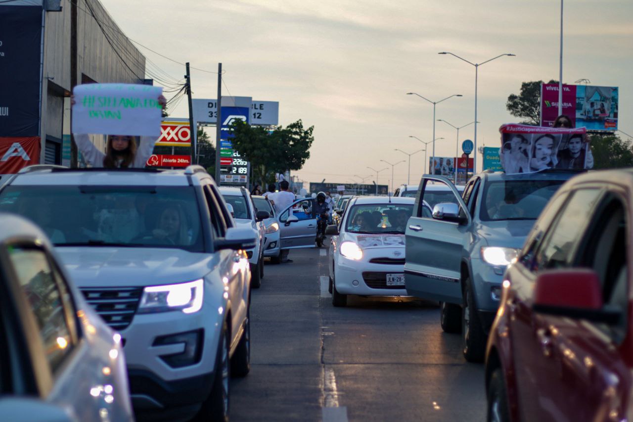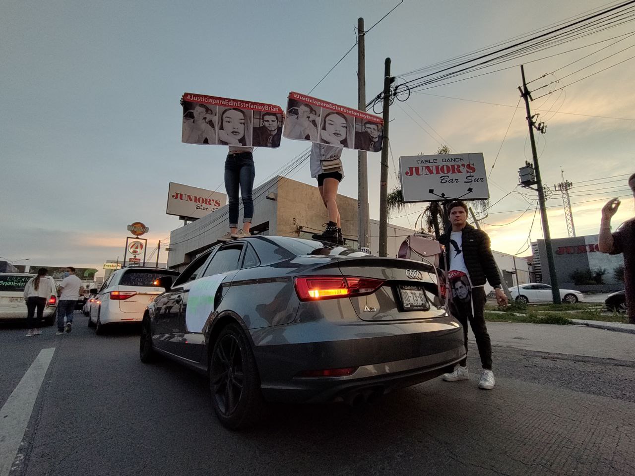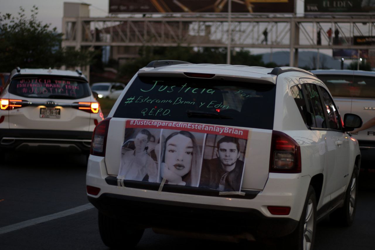 Familiares y amigos de los tres jóvenes realizaron una marcha a bordo de vehículos este viernes 22 de octubre sobre avenida López Mateos. La movilización que arrancó sobre Walmart “La Tijera” terminó en la Plaza Urban Center, sitio donde los jóvenes perdieron la vida tras el accidente.