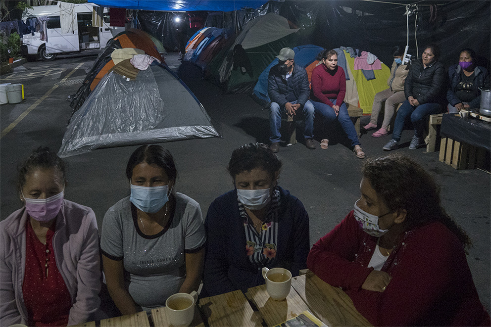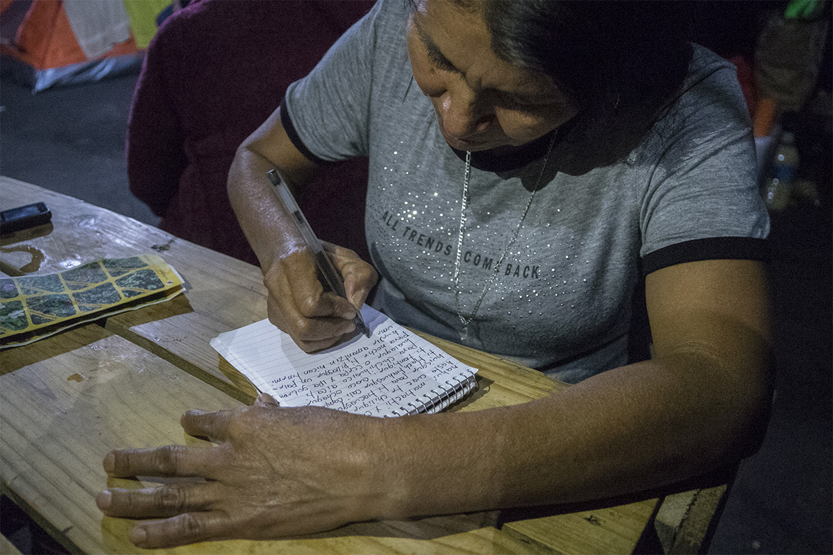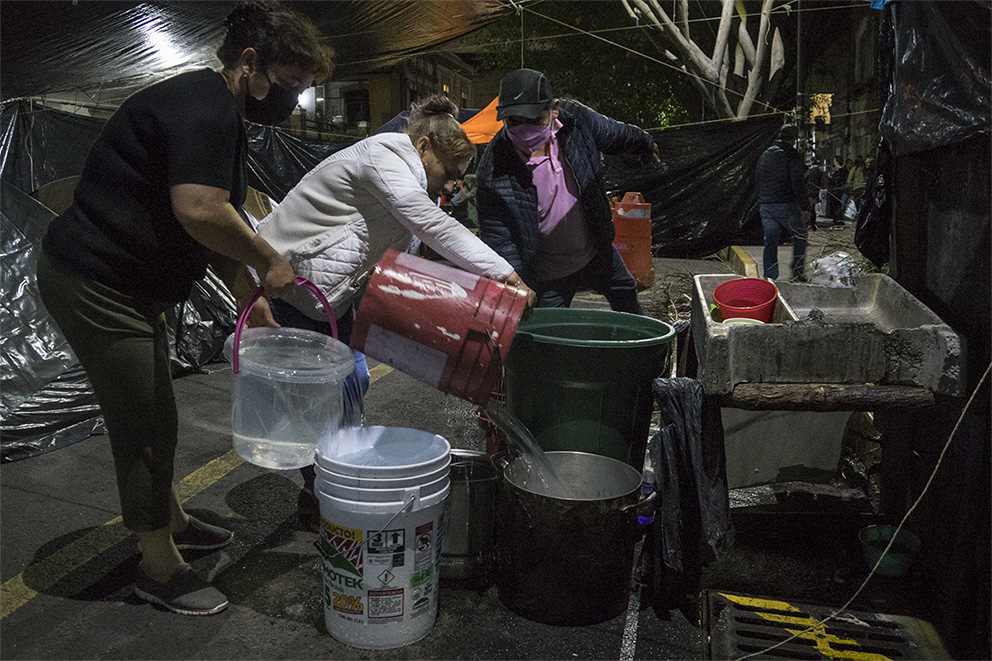 Dentro del campamento frente a la Segob la comida comienza a faltar. Los pocos frijoles se van agotando, y están por terminarse las botellas de agua que ciudadanos solidarios han donado; pero estas personas que han perdido sus casas, a sus familias y su paz, dicen que no se irán hasta encontrar soluciones.