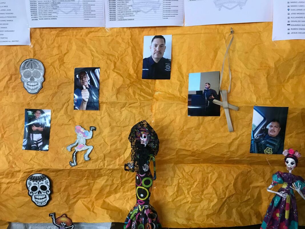 En vísperas del día de muertos, el colectivo UnidosXporLaSeguridad realizó un altar para recordar a los compañeros que han fallecido por diversas causas, pero también para no olvidar a todos aquellos que están desaparecidos. En el altar que se ubica al interior del Mercado Adrián Puga en la colonia Del Fresno se colocaron los nombres de más de 100 oficiales.