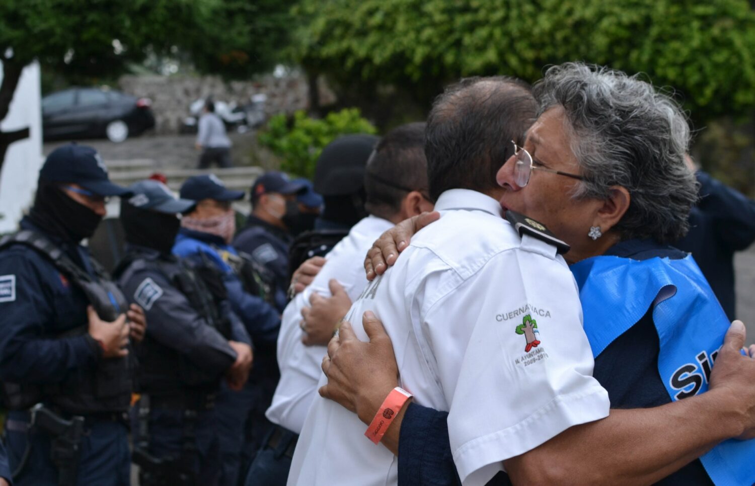 Al contar su historia, desde el patio de la Secretaría y llevando en su cuerpo una lona con la foto de Natán, la señora Alicia se acercó a los policías para abrazarlos, con ello consiguió romper su silencio y su formación estoica. Hasta los más duros, con su balaclava puesta (una prenda que les cubre parte del rostro) se suavizaron, se quitaron ese otro chaleco que les estorbaba para decirle al oído palabras de aliento y compromisos individuales que duraron al menos hasta el cambio de turno.