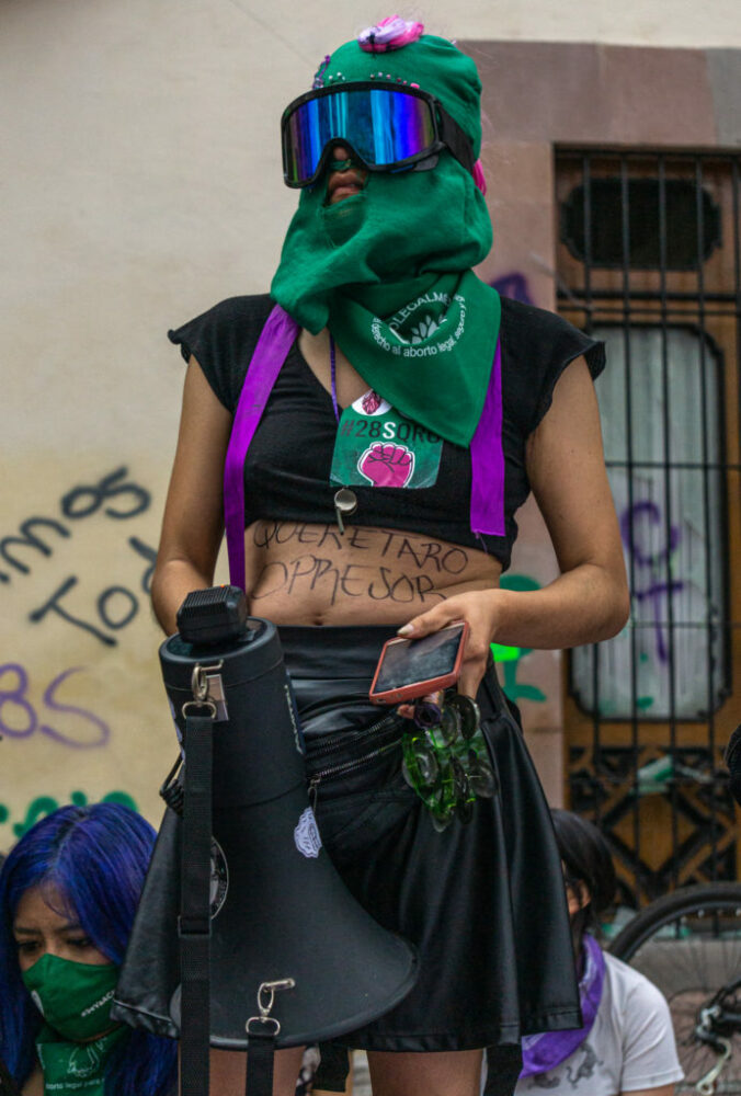 Bruja de Asfalto explica que el movimiento feminista en Querétaro se ha fortalecido en los últimos cinco años en los cuales mujeres de diversas edades y condiciones se han unido a colectivas y han tomado las calles en fechas clave tales como el 28 de septiembre y el 25 de noviembre.