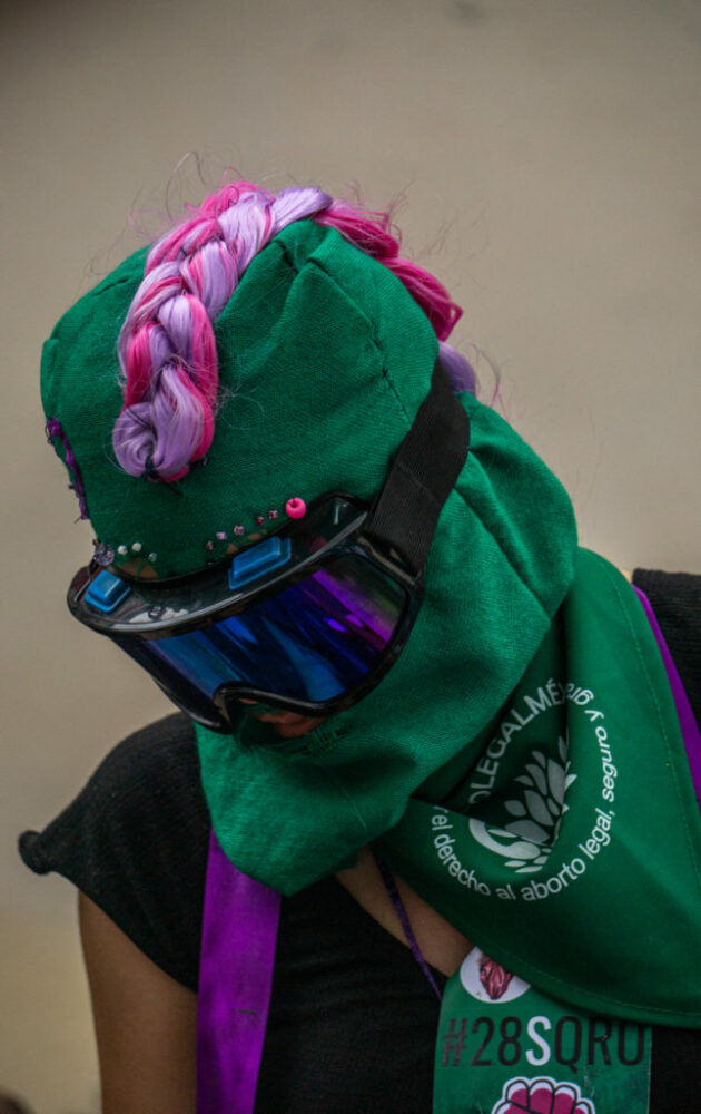 “Pero poco a poco tuve que irme cubriendo el rostro por amenazas, violencia mediática e intimidaciones que he sufrido. La capucha representa una unión de nuestros dolores sin importar nuestro rostro, pero también representa libertad y catarsis; en algún momento ya no te das cuenta de que la traes, solo te sabes ahí por ti, por las otras y las otras para ti”.