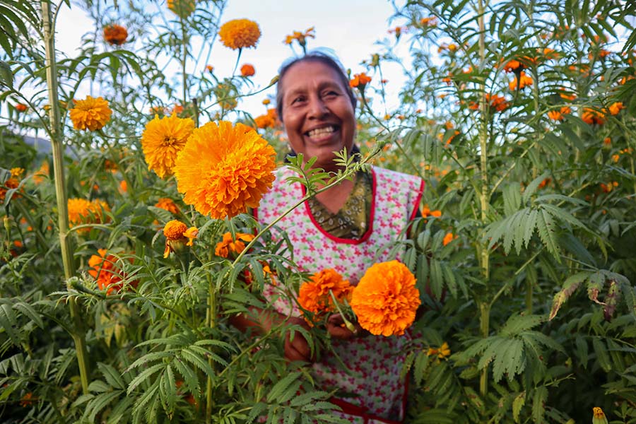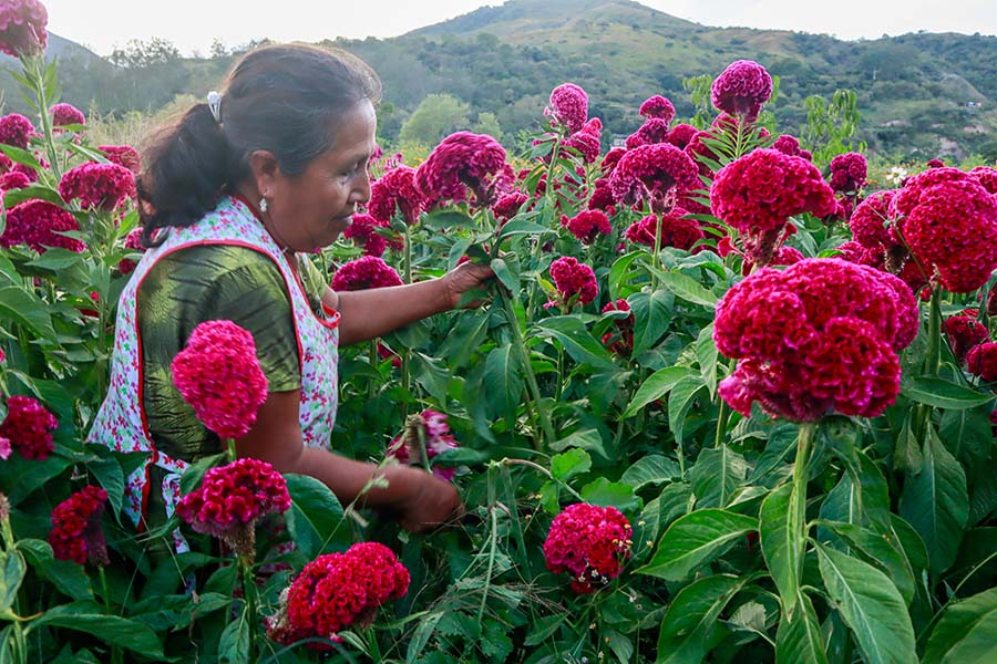 Se llegó la hora de la cosecha, ahora el trabajo de Enriqueta, su esposo y ayuda de su hija y su yerno se intensificará estos días, hasta el 3 de noviembre, cuando los tlixtecos acuden al panteón a adornar las tumbas de sus difuntos.