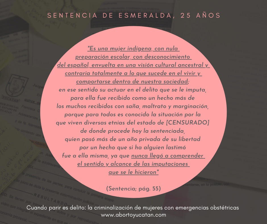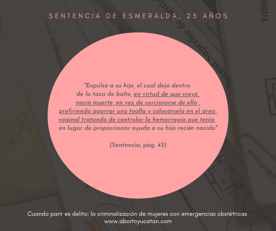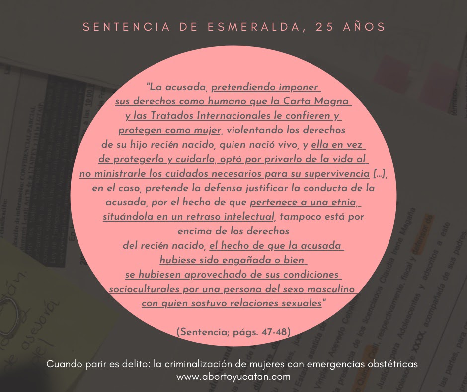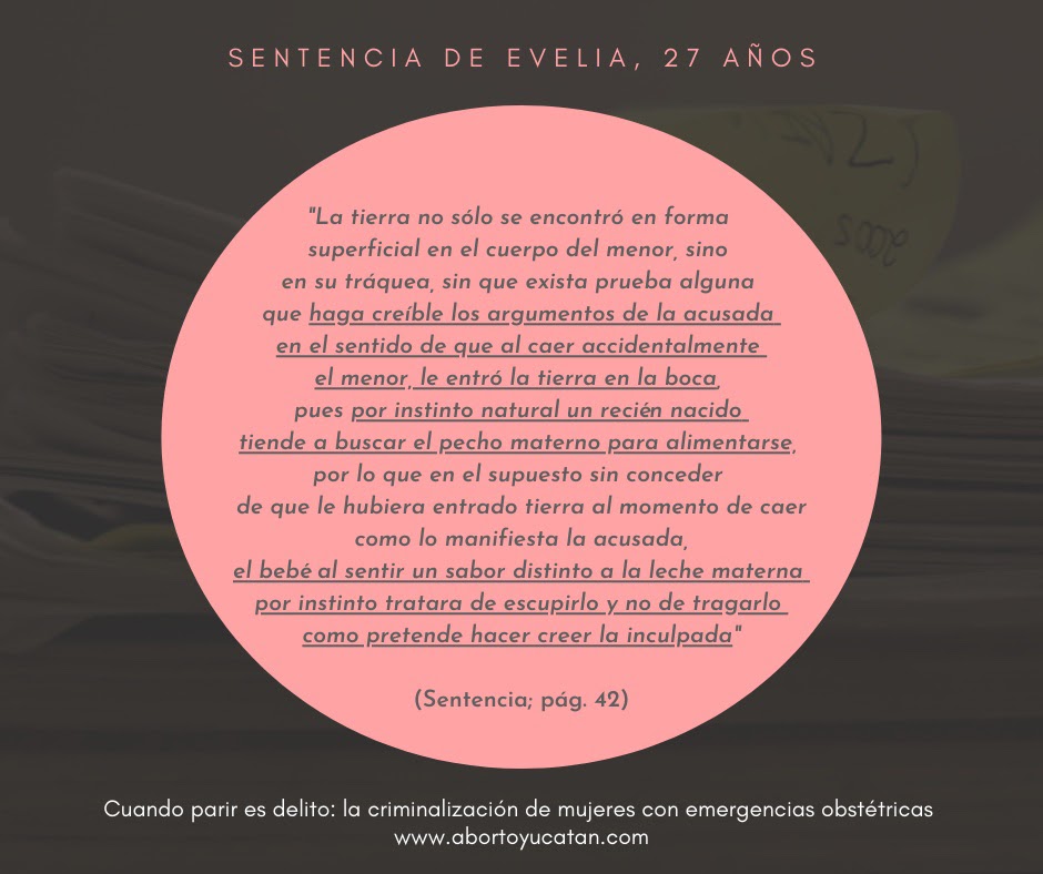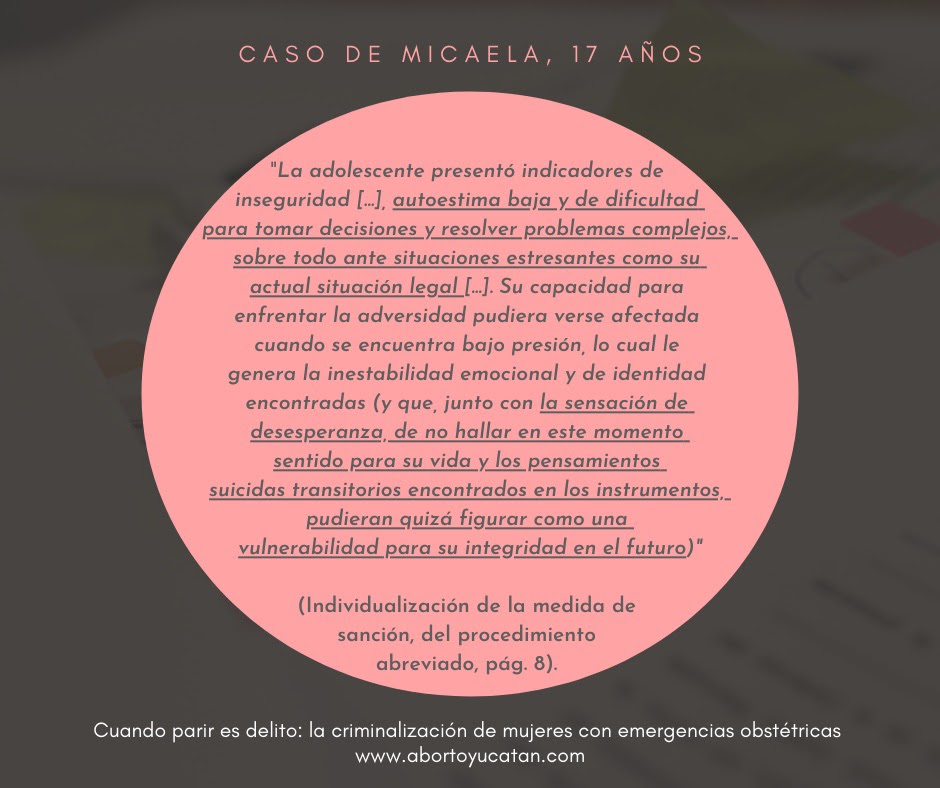 Nicté*, una menor de edad originaria de Tahdziú, tuvo un parto fortuito a los siete meses de gestación, en un embarazo producto de violencia sexual. Nunca llevó control prenatal. Al acusarla, el Fiscal argumentó que “dejó de actuar aunque tenía el deber legal de hacerlo” y “no solicitó ayuda para el parto”.