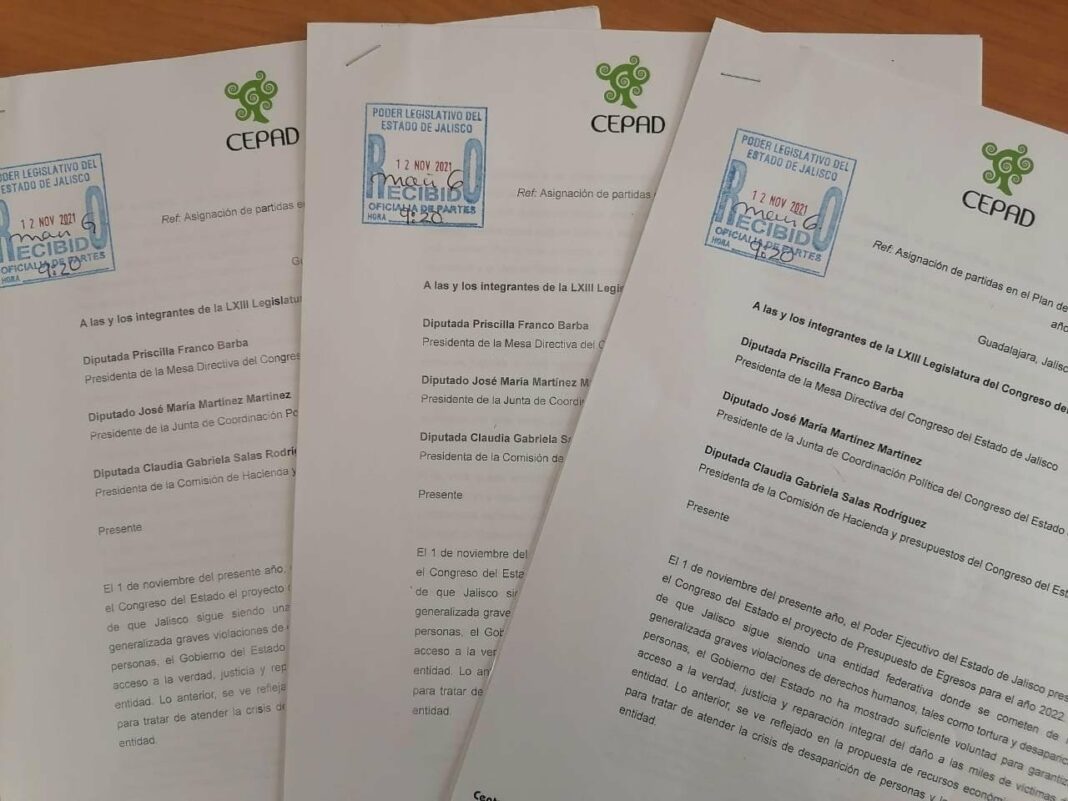 La reacción de CEPAD se manifestó en una carta entregada a los y las legisladoras del estado en la que la asociación subrayan la magnitud de los problemas en Jalisco, para luego mostrar su preocupación por las partidas reducidas.