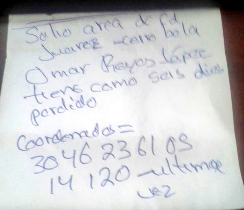 Tras varias gestiones que llevó a cabo su familia, el 12 de noviembre el Grupo Beta de Protección a Migrantes de Chihuahua y el Ejército Mexicano iniciaron la búsqueda de Omar en la zona donde mandó las coordenadas.