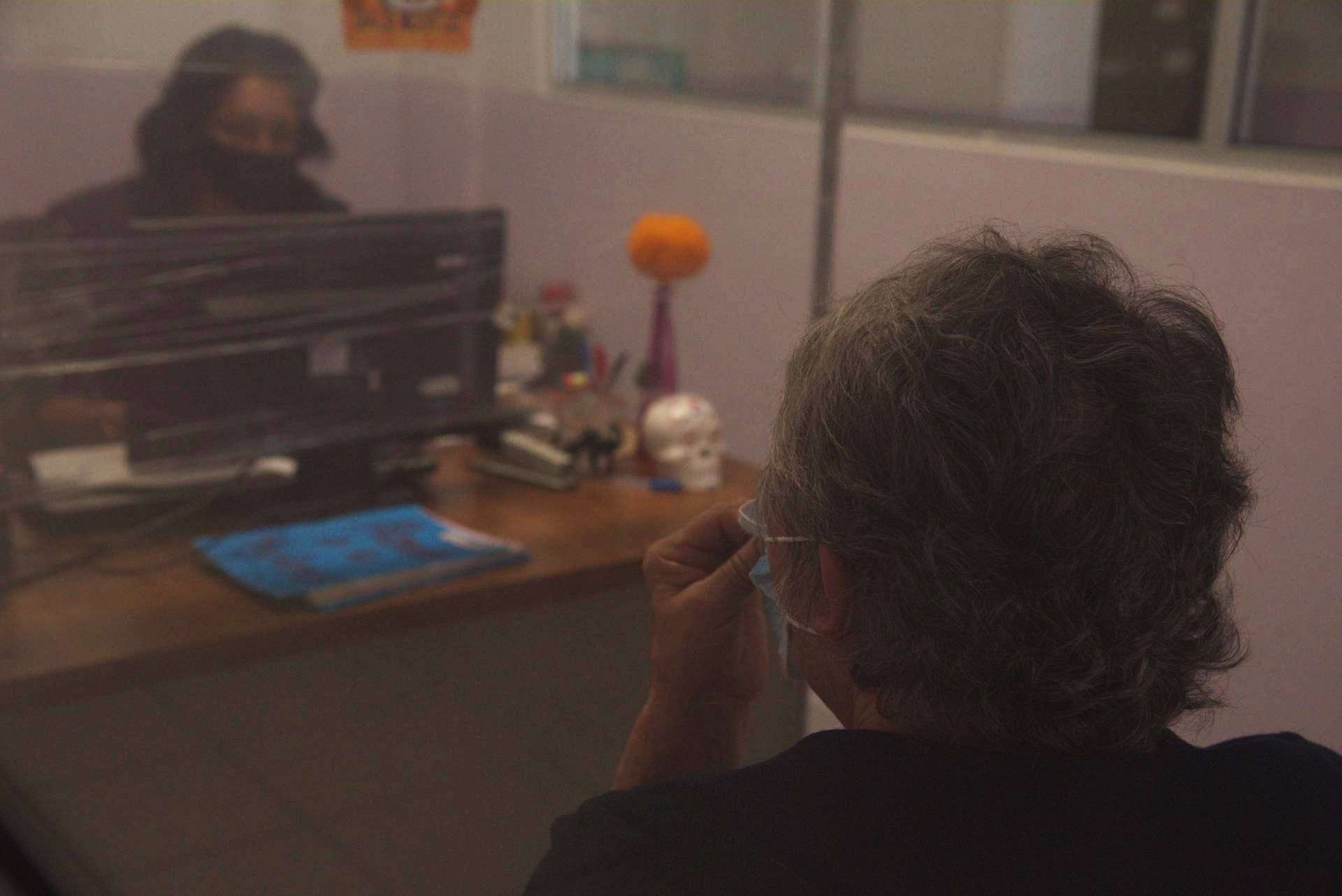 10:50 AM. Llega la señora Lourdes* de 67 años, viene acompañada de su hija para denunciar violencia por parte de su esposo. El señor tiene demencia senil y desde el confinamiento las agresiones aumentaron. Vive con miedo porque su esposo empezó a tener brotes psicóticos y le impidió salir de su casa. Decidieron denunciarlo porque amenazó de muerte a su hija. “No quiero ver a mi papá tras las rejas pero tampoco quiero ver cómo a lo mejor mata a mi mamá”, cuenta Lourdes, que se llama igual que su mamá. Cuando su padre la amenazó de muerte su madre habló al 911, ahí le dijeron que acudiera a denunciar al Centro de Justicia para las Mujeres en Tlalpan donde no les recibieron su denuncia. Y por eso llegaron aquí.