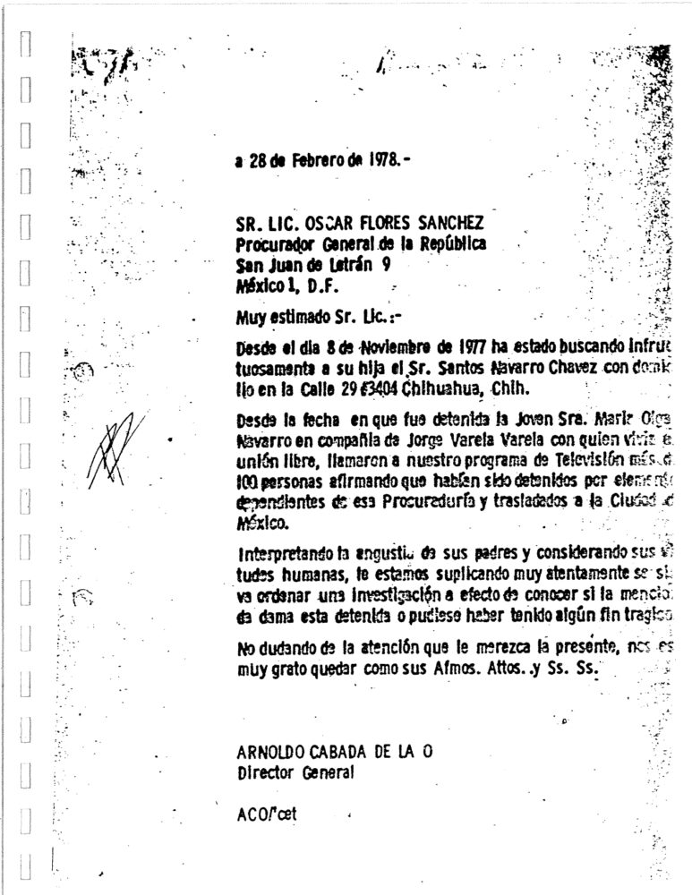 Documento del Comité de Madres de Desaparecidos políticos de Chihuahua recuperado de la plataforma Archivos de la resistencia.