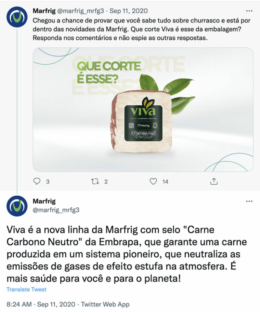 Ella cree que la nueva postura se debe a una mayor conciencia ambiental de los consumidores y que es significativo que JBS anunciara su iniciativa de cero emisiones netas en una página completa de The New York Times. «Les están diciendo a los consumidores estadounidenses, no se preocupen, no cambien sus hábitos alimenticios, todo está bien», dice Jacquet. A pesar de que JBS está tan cerca del gobierno, todavía tienen que luchar por la preferencia del consumidor, al menos en los mercados extranjeros».