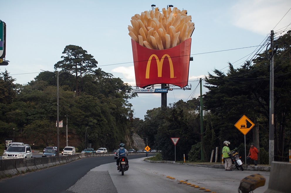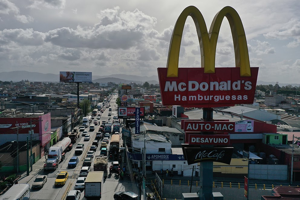 Los Cofiño son una de las familias más poderosas de la región. El apellido detrás de la inevitable M amarilla que lo conquista todo: en Guatemala, una ciudad de montañas verdes y rodeada por volcanes, no es posible andar más de 15 minutos en auto sin encontrar una sucursal de McDonalds. Hay muchas en las zonas de clase media pero también en la elegante carretera a El Salvador y ahora se expanden en zonas con más carencias. Sus anuncios también están en todas partes: en paradas de autobuses, en carteles con forma de bolsa, en anuncios luminosos, en papas gigantescas que aparecen a media carretera.
