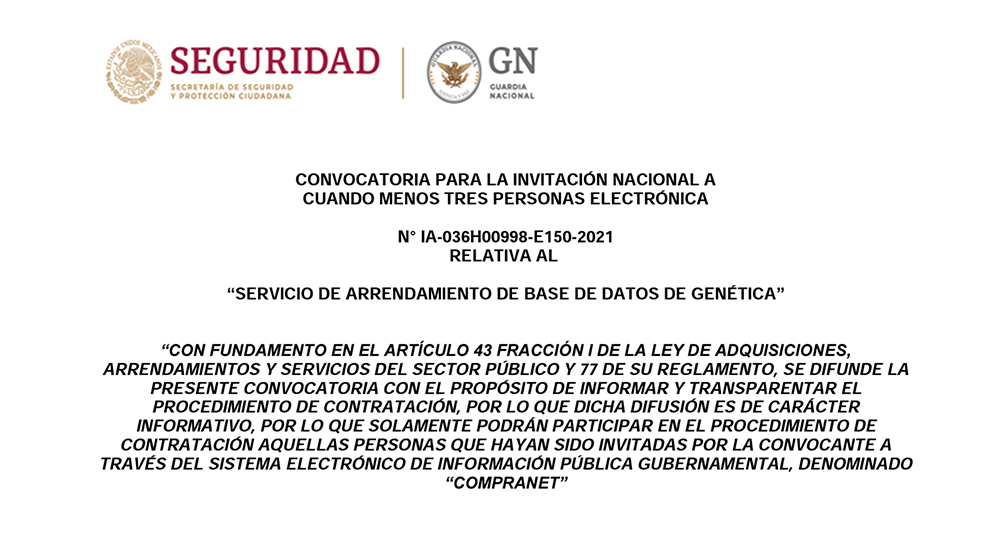 En noviembre de 2019, la GN adjudicó, de manera directa, el servicio de mantenimiento de equipos especializados de su área de amplificación, cuantificación y electroforesis capilar (una técnica de separación electroquímica de biomoléculas), por un monto de 526 mil 261 pesos. Y en junio de 2021, también por adjudicación directa, para la adquisición de reactivos y consumibles para diferentes procesos de identificación, por 17.6 millones de pesos.